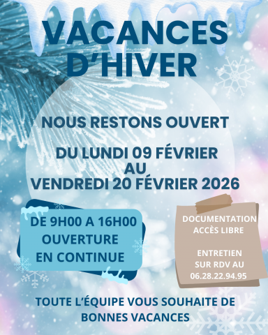 Horaires d'Ouverture Du Lundi au Vendredi De 9h00 à 12h30 et de 13h30 à 17h00